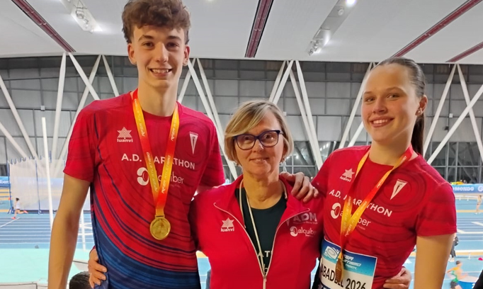 Gran primera jornada de los Campeonatos de España Short Track Sub-20, que se están celebrando en la pista Carmen Valero de Sabadell, para la Agrupación Deportiva Marathon. La entidad madrileña sumó tres medallas de oro de la mano de sus pertiguistas Ana Parajua y Marco Rodríguez y del pentatlón femenino representado por Valeria Krasnitskaya.